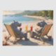 Under the rays of a blue cloudy day, two hippos lounge in brightly colored deck chairs on a serene sandy beach. They sip fruity cocktails adorned with slices of lemon, The gentle waves lap at the shore, reflecting hues of the blue sky, while trees sway in the warm breeze. Their relaxed postures and contented expressions exude vacation vibes, turning this whimsical scene into a perfect moment of tropical bliss and carefree charm.