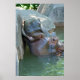 Photo of a hippopotamus (hippo) sticking his head up out of the water, taken at a local zoo.