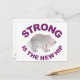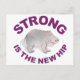 A cartoon hippopotamus with a cheeky grin. The pink slogan reads "Strong is the new hip". This is a play on the fitness inspiration saying "Strong is the new skinny". A fun bit of gym fitsperation for the animal lover.