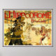 L Hippodrome Brd De Clichy ( Boulevard De Clichy ) Vintage French Circus Poster features a woman on horseback possibly persued by mauraders in a giant stadium.