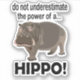 Hippopotamus Animal Funny Hippo Sticker designed by Nisha Prabhu. Featuring cute hippopotamus animal with funny typography ''do not underestimate the power of a HIPPO''. Add a dash of humour to your belongings with this hilarious Hippopotamus Animal Funny Hippo Sticker! This quirky sticker features a charming hippo design that is sure to make you smile. Perfect for decorating your laptop, water bottle, or notebook, this sticker is a fun way to show off your personality. Stick it on and let the laughter begin!