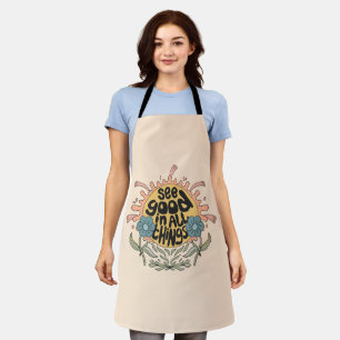 Brown Beige Retro Y2K Hippie Sunflower Pattern Apron