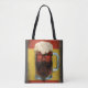 Trendy tote bag featuring a unique illustration of a beer mug with a full beard and glasses, set against a bold red background. This artistic and quirky design is perfect for those who love creative accessories and want to make a fun statement wherever they go.