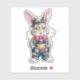 A cute cartoon illustration of a bunny wearing a gray fedora hat with a red band and round wire-rimmed glasses. The bunny has a cheerful expression with rosy pink cheeks and a small smile. It is wearing denim overalls with colorful patch details - yellow, pink, green, and blue squares sewn onto the legs. A red polka-dotted bow tie adorns its neck. The bunny's fur is rendered in light beige with subtle gray tones, and its ears are perked up and forward. The bunny is standing in a three-quarter view pose against a pure white background. The art style is soft and watercolor-like with clean lines and gentle shading. The overall composition has a whimsical, child-friendly aesthetic with a hipster-inspired outfit.