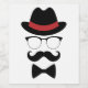 Fun design features the best hipster gentleman accessories including retro fedora, black rimmed glasses, moustache and bow tie.
