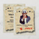 La devanture de cette invitation rétro inspirée du 4 juillet présente un faux arrière - plan en bois avec une affiche vintage de l'Oncle Sam et une fausse bande de masquage tenant l'affiche déchirée en place. Il y a beaucoup de texte personnalisable pour que vous puissiez ajouter vos informations de groupe. L'envers a le même graphisme "bois" et "papier" déchiré et est également décoré d'étoiles bleues. Montré ici comme une invitation barbecue du Jour de l'Indépendance, ce design polyvalent peut être customisé pour presque n'importe quelle occasion patriotique.:::: C'est une invitation IMPRIMÉE FLAT. Toutes les images et le texte de ce dessin sont imprimés sur du papier sans embellissement ni arêtes surélevées.::::