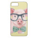 Cute digital watercolor features hipster pink pig with oversized glasses and a fancy bow tie