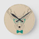 Hipster Reindeer Elk with glasses grungy Christmas Round Clock