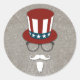 Imagine Uncle Sam as a hipster. This invitation brings that idea to life with a graphic representation of one of the USA's symbols as a modern day hipster. The glasses are a requirement along with the curly moustache. He keeps his star spangled top hat and long beard. The image is made urban by printing against a grungy concrete background. Available with matching products.