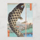 Hiroshige's 1857 print Suidō Bridge and the Surugadai Quarter depicts the view from Surugadai, Kanda River, Suidō Bridge, Edo Castle, Mount Fuji. Koinobori carp streamers place the scene around the Boy's festival on the 5th day of the 5th month. Ukiyo-e ("pictures of the floating world") is a genre of Japanese woodblock prints (or woodcuts) and paintings produced between the 17th and the 20th centuries, featuring motifs of landscapes, tales from history, the theatre, and pleasure quarters. It is the main artistic genre of woodblock printing in Japan. The Floating World store on Zazzle painstakingly restores these historical treasures to vibrant colour and fixes basic aging issues. Paper texture and colour values are maintained because it reveals the aged beauty of these master works of art.