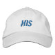 Custom Embroidered Alternative Apparel Basic Adjustable Baseball Cap Hat in White printed with HIS in Blue text typography lettering and digital graphic design by TheFabricSeal print on demand shop at Zazzle.com #ZazzleMade https://www.zazzle.com/store/thefabricseal TheFabricSeal©️Original.
