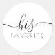 His Favorite Wedding, engagement party or reception favor package label - simple , sweet and classic - the heart is a hand drawn calligraphy heart used for the "o" in Favorite - the color can be changed to match your preferred text color