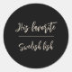 Create an easy DIY wedding favour with these 'his favourite' stickers to share the groom's favourite treats with guests, perfect for a modern black and tan wedding.