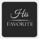Simple black and white deco flourish "His Favourite" wedding treat stickers.