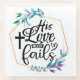 His Love Never Fails Glass Coaster. This beautiful glass coaster is perfect for anyone who loves Jesus Christ and wants to display their faith proudly. The coaster features a beautiful blue floral wreath and the message "His Love never Fails" in the middle, making it the perfect addition to any home. The coaster is also great for baptism gifts and can be used as a decoration or keepsake.