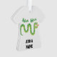A dark and light green snake with red forked tongue and green text that reads Hiss Hiss on T-shirts, mugs, bags, cards, pillows, magnets, and more, great for kids and adults.