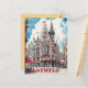 This travel postcard, in hand drawn sketch-style, showcases the European skyline of Antwerp, Belgium.