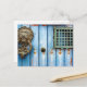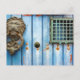 Old historic door knocker on a blue door in Cartagena, Colombia