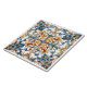 This captivating tile showcases an intricate design, featuring a burst of blue, orange, and yellow flowers intertwined with lush green foliage.