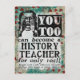 History Teacher vintage advertisement in turquoise, aqua, red and black. Arty, funny, colourful and fun, it makes a great gift and will surely bring smiles and laughter to the recipient.
