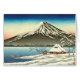 Paysage d'hiver dominé par le mont Fuji. Un homme dans un petit bateau près du rivage avec une construction neige-couverte près du rivage. (Des 1890) gravures sur bois du 19ème siècle originale par l'artiste inconnu. Tous droits réservés art 2013 d'aumônier de ©