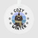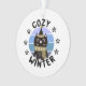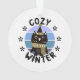 Une chouette chouette portant une écharpe d'hiver et les grands mots heureux hiver. Pour tous ceux qui aiment les vibes d'hiver et les animaux mignons.
