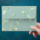 Enveloppe mariage de collection de feuillage d'hiver avec arrière - plan vert pastel doux et feuillage d'hiver sans couture motif