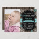Winter Onederland Boy or Girl 1st Birthday Invitation avec photo personnalisée. Aqua Turquoise Turquoise et Flocon de neige blanc. Premier anniversaire. Garçon ou fille 1er Anniversaire Invitation. Arrière - plan de tableau de bord en bois rustique. Noir et Blanc. Ruban Turquoise Turquoise Aqua. Pour plus de personnalisation, cliquez sur le bouton "Customiser" et utilisez notre outil de conception pour modifier ce modèle.