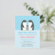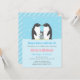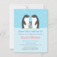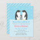 Bientôt il y en aura 3 ! Invitation vos invités à célébrer l'arrivée prochaine de la petite avec cette invitation mignonne, élégante et chaleureuse baby shower! Il dispose d'une famille de pingouins heureux avec le petit pingouin bébé dans l'étreinte chaleureuse de ses parents. Les flocons de neige, les coeurs et la neige se mélangent à l'arrière - plan bleu. Au verso est un motif à bandes inclinées pour arrière - plan. Un design neutre pour les deux sexes permet à vos invités de deviner le genre du bébé ! Idéal pour les bébés arrivant en hiver décembre. Personnalisez avec vos détails de baby shower.