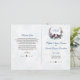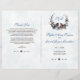 Chic Berries Bullfinch Winter Wreath Wedding Programme Carte romantique avec une couronne d'hiver (branches de sapin, baies rouges et feuillage) avec deux oiseaux (bullfinch), ce qui donne de l'espace pour les initiales de la mariée et du marié, le tout sur un arrière - plan blanc avec des flocons de neige décolorés. Utilisez l'outil Personnaliser pour ajouter vos informations. Voir aussi ma collection de célébrations des événements de la vie hivernale.