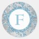 Cet élégant autocollant à motif damassé de parties scintillant FAUX de 1,5 po rond monogrammé bleu glace, gris argenté gris argenté et gris argenté porte sur lui un arrière - plan de flocons de neige blancs assortis qui correspond à l'invitation de mariage d'hiver présentée ci-dessous. Vous pouvez changer le monogramme à ce que vous voulez, et vous pouvez également changer la taille et/ou la forme de l'autocollant, bien que pour de meilleurs résultats, s'il vous plaît envoyez-moi un courriel pour modifier la forme. Si vous avez besoin d'autres articles correspondants dans cette conception, veuillez envoyer votre demande par courriel à niteowlstudio@gmail.com.