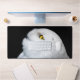 Portrait photo d'une belle Chouette blanche avec les yeux jaunes sur l'arrière - plan noir.
