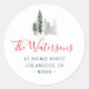 Cet autocollant a une merveilleuse main dessinée de la végétation de la forêt d'hiver et texte rouge. Les détails du texte peuvent être personnalisés pour la couleur, la police et le placement.