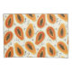 A pattern of hand drawn tropical papaya fruit halves in colours of bright, deep orange complete with seeds. The papayas are surrounded by dots and the funny greeting "hiya papaya" in hand written text for an added bit of fun. My Hiya Papaya fruity pattern is a cheeky twist on the usual tropical fruit designs!