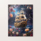 A fun fantasy image of HMS Victory, Lord Nelsons Ship jigsaw puzzle. Traveling though the galaxy with planets and starts in the sky.