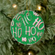 HO HO HO Christmas text pattern white green red Ceramic Ornament