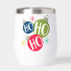 Ho Ho Ho Festive Christmas Decorations Holiday Thermal Wine Tumbler features three whimsical Christmas baubles with the text "Ho Ho Ho" in modern typography accented with snowflakes. Perfect for holiday decorating and gift wrapping. Bright, colourful and fun. Designed by Evco Holidays www.zazzle.com/store/evcoholidays