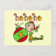 A cute Christmas holiday design features an elf dressed in a red stocking cap and pointy elf shoes resting against a tree ornament ball and candy cane striped text reads Ho Ho Ho on holiday T-shirts, mugs, bags, sweatshirts, keepsakes, buttons, magnets, stickers, and more!