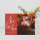 Modern holiday card featuring the words "ho ho ho" in an modern white script handwritten script typography on a red background. Your photo is displayed to the right. Featured on the back is a red and black buffalo plaid pattern.