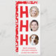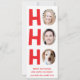 Personalize this funny and merry spirited Christmas holiday photo card with three of your own photos as well as a personalized message of good cheer. Santa inspired "Ho Ho Ho" text gets a in classic twist in red and white with a modern and bold removable backer pattern of snowflakes making this card a festive choice for your holiday card this year.