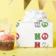 Wrapping paper with Ho Ho Ho peace sign pattern.