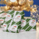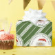 Spread the joy of Christmas with this custom made and personalized holiday gift wrapping paper featuring a very festive and cure Santa Claus singing HO HO HO. Decorated with a holiday classic of green and white diagonal lines, simulating peppermint candy stripes.