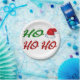 Paper plates with ho ho ho in 3D green and red letters and a Santa Claus hat. Plates available in several sizes.