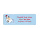 Happy Santa cartoon "Ho Ho Ho" return address labels with white snowflakes on a blue background. Designed by Simply Put by Robin; Image © Graphics Factory. Coordinates with custom photo card found here: