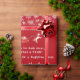 Modern, funny, and cute Christmas wrapping paper, with an image of a unicorn pulling Santa's sleigh (full of gifts), the texts "Ho ho hoh dear, what a YEAR!" + "Here's to a happier one!" + "Merry Christmas!" and a personalized name. With sprinkles of white and silver snowflakes and two pairs of Xmas bells with a spring of holly, on a Xmas red background.