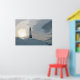This poster is of the Hoad Monument, more properly called The Sir John Barrow Monument, which stands at the top of Hoad Hill above Ulverston, South Lakeland, Cumbria, UK. It takes the form of a lighthouse, though has never been used as one. This is a digitally enhanced photo manipulation of the monument in snow, with the light of the sun low in the sky behind the monument. The mood is gentle and contemplative, the colour palette is of greys and white.