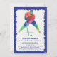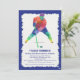 A trendy invitation featuring a hockey player in geometric form with a grunge blue frame. Perfect for any age hockey fan.