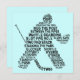 Neat typography art design of a hockey goalie, using hockey terms, slang, phrases etc. The design works well on a t-shirt, hoodie, cell phone case, mousemat, greeting card, framed print, sticker and so much more. You can customize any design, by adding your own text, or resizing the design, which is great for products such as cell phone and laptop covers, address labels, birthday cards, post-cards, t-shirts, mugs, magnets etc. Great for adding your own personal touch.