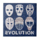 Design showing the evolution of ice hockey goalie masks from the late 50's when they where first worn to the modern day.