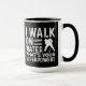 Hockey theme mug with white silhouette hockey player with hockey stick and white text that reads I Walk On Water What's Your Superpower?